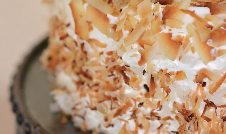 - To assemble, place 1 cake layer on a cake plate and ice, then sprinkle some grated smoked coconut on top of the cake. Add the second layer of cake and cover with icing. Then place the toasted shaved coconut all around and on top of the cake. The cake will keep for 3 to 4 days.
