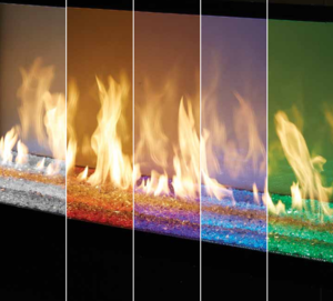 The burst of color adds a mesmerizing glow around the flames and reflects off the crushed glass floor to create a dramatic presentation of fire unlike anything you have ever seen.
