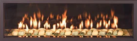The WS54 Wide Screen is a massive landscape of deep, generous flame among the Tranquility fire’s smooth sand and river rock, or the Black Diamond’s sparkling black glass. This ultra-modern fireplace art is sleek and modern in reflective Black, Coffee Bean Brown, Copper or Titanium porcelain firebox panels. Its full 3-dimensional flame captivates the attention from any angle in the largest of rooms with the look of a custom fireplace.